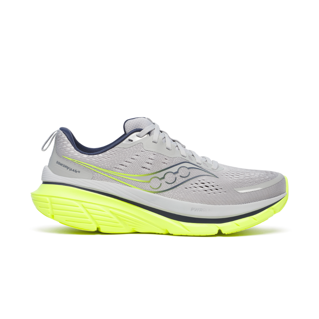 At just 9.6 ounces, the Guide 18 offers a broad base geometry for enhanced stability and cushioning without unnecessary weight. The vibrant Cloud/Citron colorway adds a bold, modern style to this high-performance shoe.