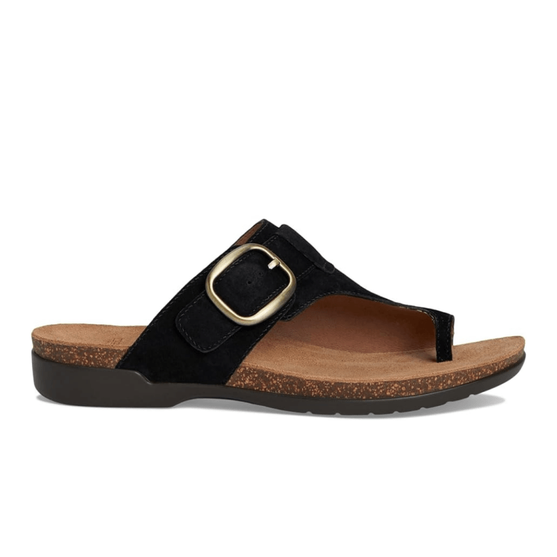 Featuring a sleek toe post design with a stylish buckle accent, the Rylee offers adjustable comfort and a secure fit. Inside, the soft leather lining and suede sock lining provide a plush underfoot feel, while the molded memory foam footbed delivers cushioning and arch support for all-day wear.
