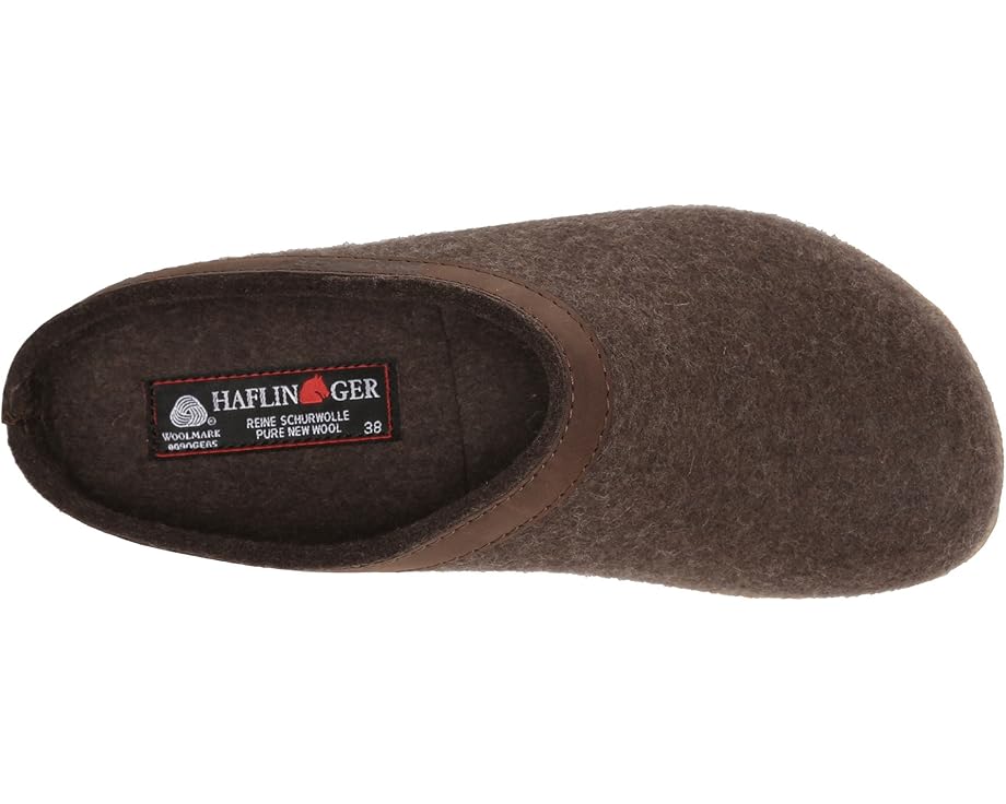 Haflinger GZL Leather Trim Grizzly Clog – Smokey Brown