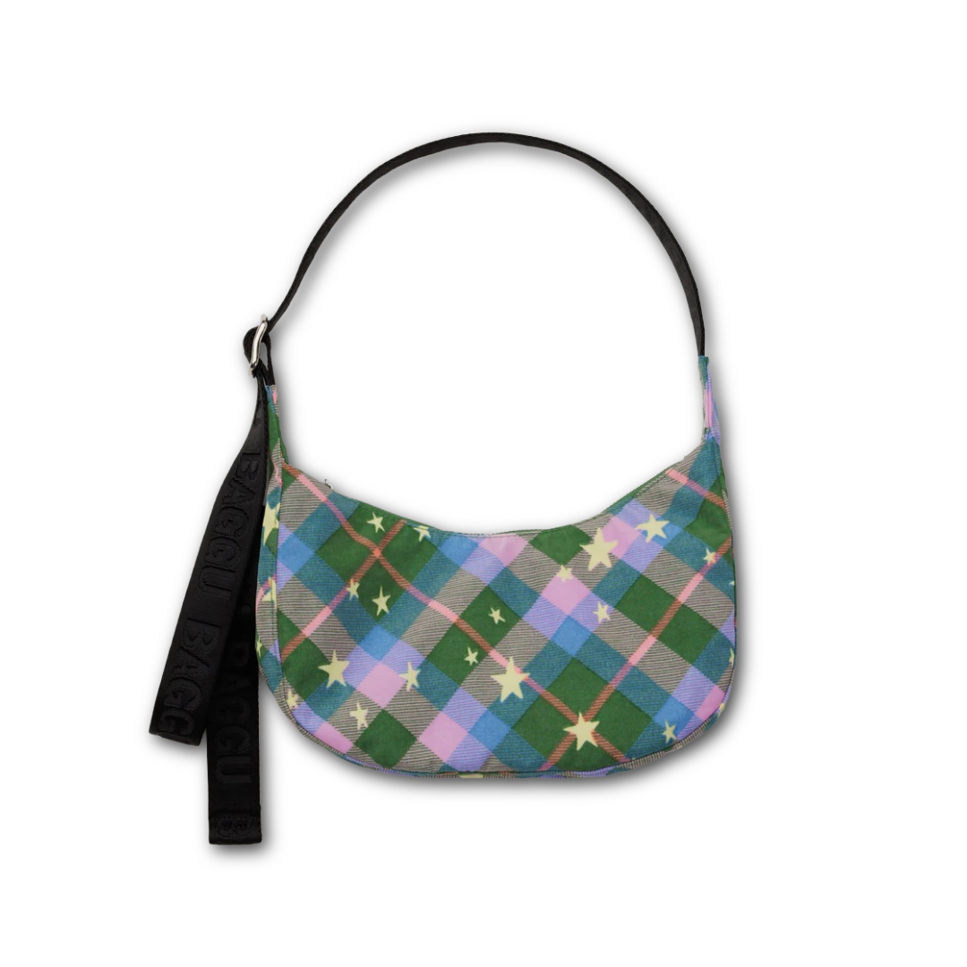 Baggu Small Nylon Crescent Bag – Green Star Plaid