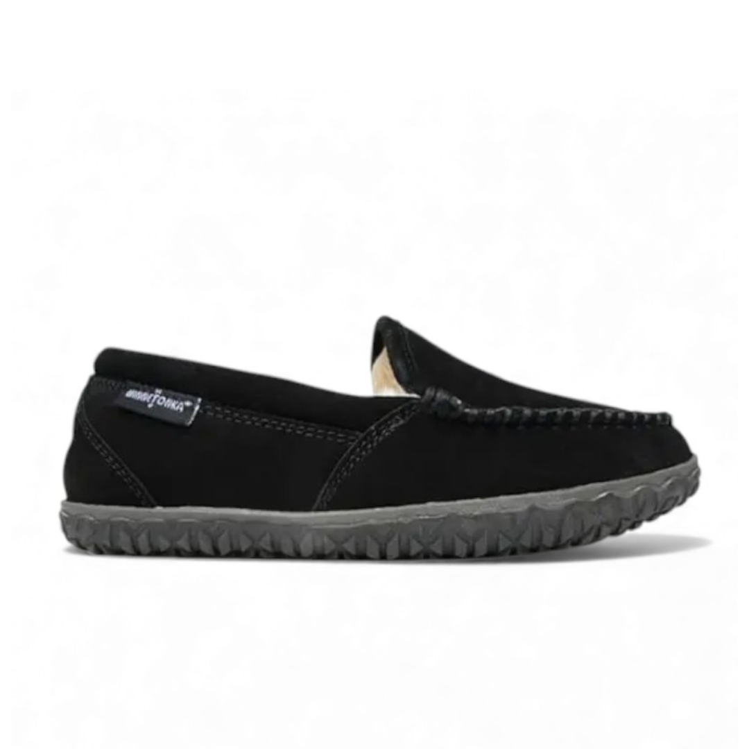 Made with a water and stain resistant suede upper, this women’s moc slipper is built to handle everyday wear while maintaining a clean, polished look. The rich black suede offers timeless style that transitions effortlessly from lounging at home to quick trips outside, making it an ideal choice for busy schedules and on-the-go comfort.