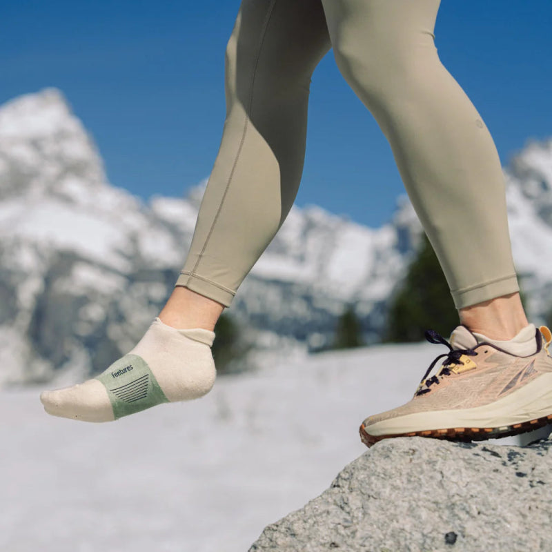 Elevate your sock game with Feetures Merino 10 No Show Tab Socks in Pampas Grass—hidden comfort that keeps up with your every move.