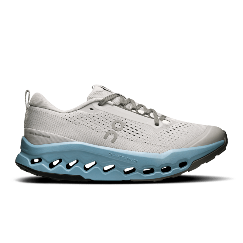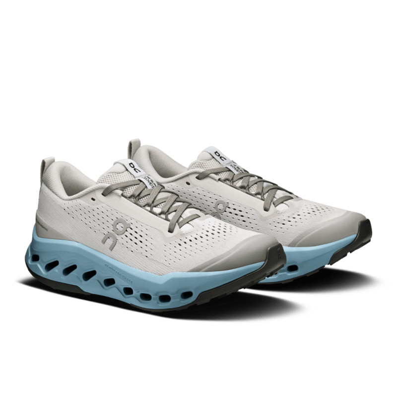 On Women's Cloudsurfer Trail 2 – Glacier/Dust | Cushioned Trail Running Shoe for Smooth Transitions and Confident Grip