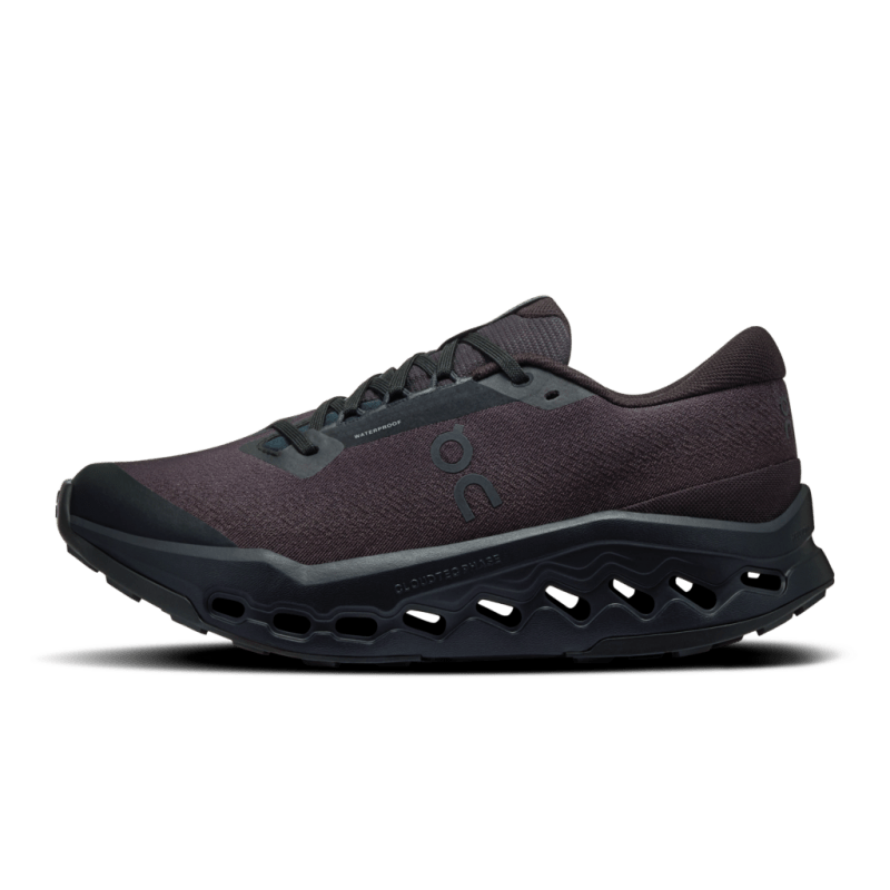 On Women's Cloudsurfer Trail 2 Waterproof – Black/Black | Sleek, Waterproof Trail Running Shoe with Plush Cushioning