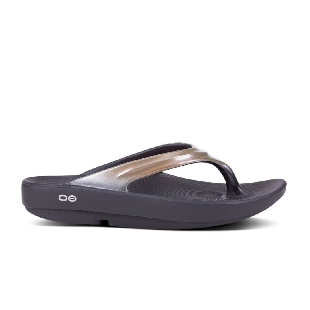 Luxe: Colors and shine bring some extra fun and expression to OOFOS' classically sleek footbed.